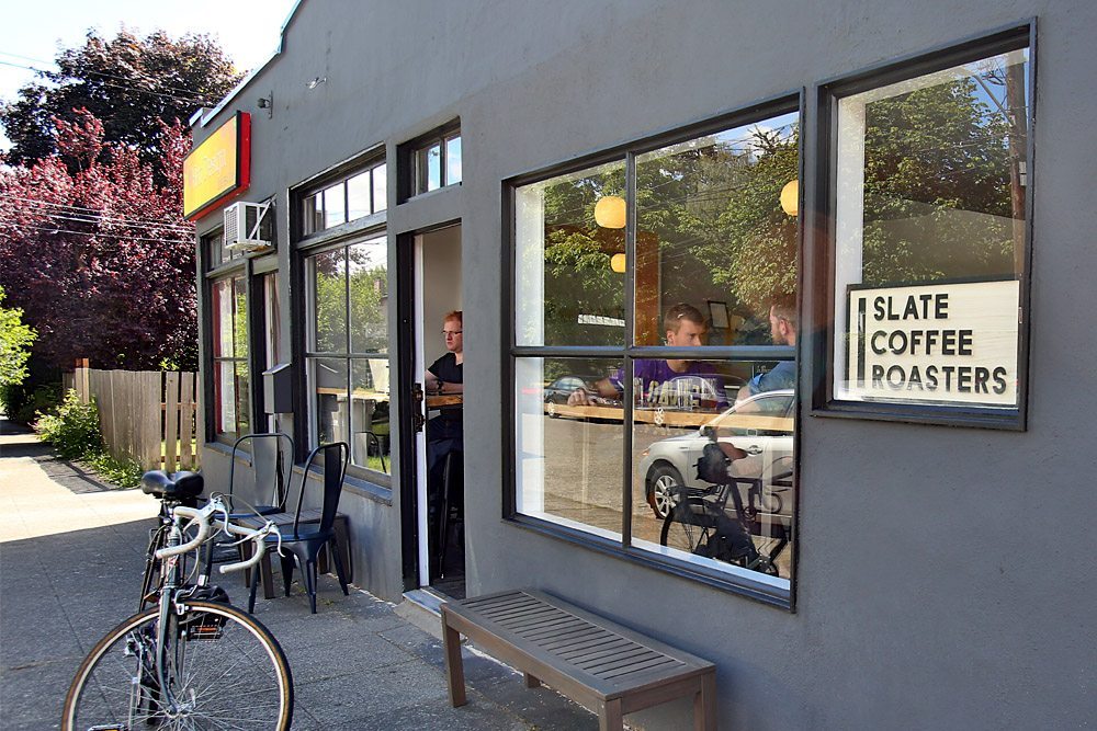 Are you looking for an authentic, one-of-a-kind coffee experience in Seattle? If you can look beyond the myriad of independent (and awesome!) local coffee shops in the home of Starbucks, I highly recommend a stop at Slate Coffee Roasters in Ballard. This cozy, friendly cafe has the vibe of the bar from Cheers! – a warm, inviting place where everyone knows your name after a few repeat visits. Slate’s laid back demeanor begs for at least 2-3 hours of your time to chill out and chat with the baristas, or pull up a stool with a good book and lounge the afternoon away. Be prepared to load up on caffeine during your stay, especially if you order the coffee tasting flight (which I highly recommend!). This flight gives you a sampling of all of the coffees that Slate currently has in stock, and they come in a variety of presentations, from a straight up espresso shot to a foamy latte. If you’re in a hurry, no worries–you can still order coffee by the cup to go. But the real selling point of Slate is to sit for a couple hours and soak up the complete experience.